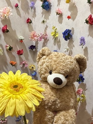 また、館内にはフォトスポットも充実しておりますので、記念撮影にもぴったりです。ご来館の際はぜひ、お気に入りの場所で写真を撮ってお楽しみください。下記の写真は、ショップで販売中のぬいぐるみ「ラルク熊」をモデルに撮影してみました。ぽってりボディと、虹(ラルク)色の肉球がチャームポイントです( *´艸`) ご来館の記念やお土産にもおすすめです。