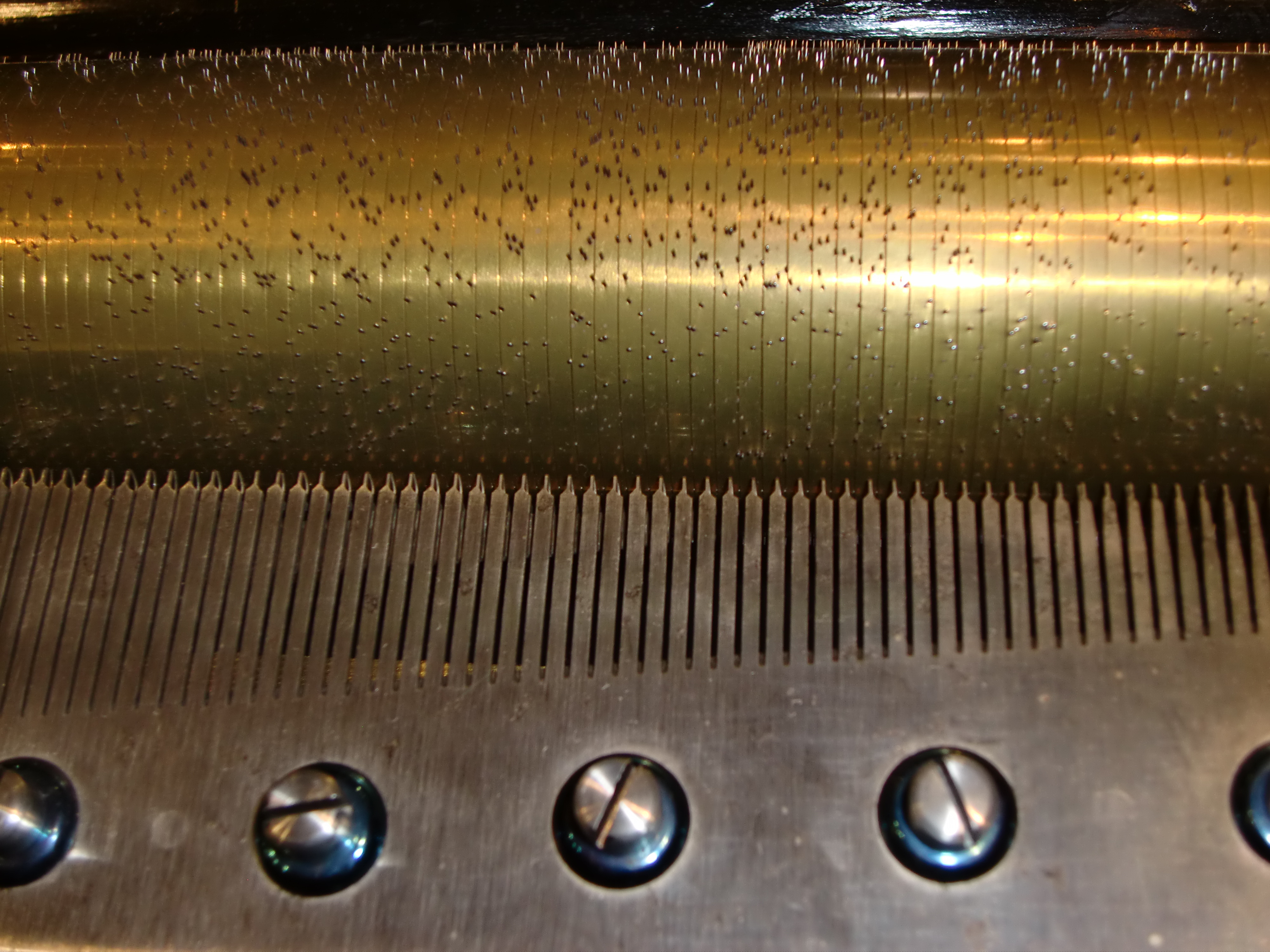 音を奏でる櫛の歯(発音体)ですが、ディスクオルゴールにも同様に櫛の歯が付けられています。